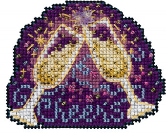 Celebrate the New Year with champagned and "Cheers!" Kit Includes: Beads, treasures, 14 Ct. perforated paper, pattern, floss, needles, magnet and instructions. Finished size: 3" x 2.5"