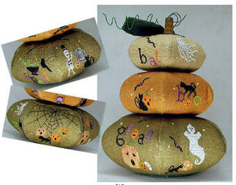 Model stitched on 3 different colors of 32 Ct. linen from Weeks Dye Works using Weeks Dye Works, Gentle Art Sampler Threads, Kreinik Blending Filament, Mill Hill Beads and buttons from Just Another Button Company (or all DMC floss 745, 937, 470, 721, 3607, 333, 844, 751, white, 169, 3853, 310). Stitch Count for Largest: 18H x 18W. Design Size: 1" x 1".