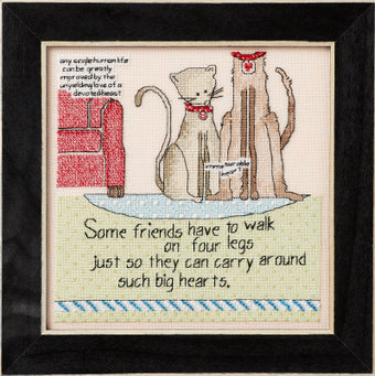 This Curly Girl design features a dog, cat and the saying "Some friends have to walk on four legs just so they can carry such big hearts."