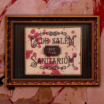 Cross stitch pattern from Dirty Annie's Southern Style featuring a sanitarium sign that reads, "Olde Salem Sanitarium"!