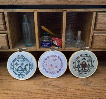 Model stitched two over two on 28 Ct. Picture This Plus Mercedes, Meditation, and Valor linen using Classic Colorworks and Gentle Arts Simply Wood (or all DMC floss 3847, 963, 553, 898, 500, and 3782). Stitch Count Loch Ness Monster: 49W x 49H. Stitch Count Unicorn: 43W x 43H. Stitch Count Sasquatch: 47W x 47H.