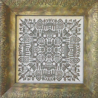 Model stitched on 32. ct. Artichoke linen using DMC thread. Stitch count is 115 x 115.