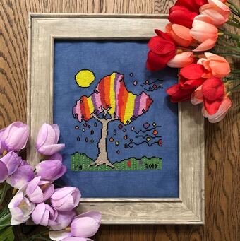 Cross stitch pattern from Bendy Stitchy Designs featuring a bright and colorful tree.