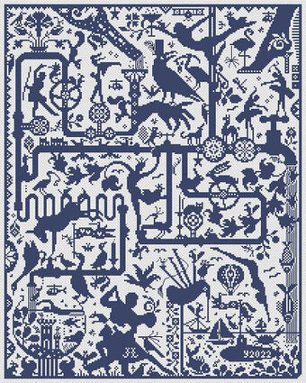 Pattern stitched on your choice of fabric with your choice of threads! Stitch count is 211 x 265. 27255 cross stitches and 1410 back stitches.