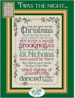 "Twas the night before Christmas and all through the house, not a creature was stirring, not even a mouse..." Model stitched on 30 Ct. Light Khaki Linen by Weeks Dye Works with Sullivans or DMC floss . Stitch Count: 153x223. NOTE: pattern not suitable for Aida due to all the fractional stitches!