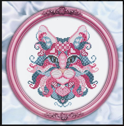 Valentino is 2nd in the Colorful Cats series and is worked in shades of rose and aqua.